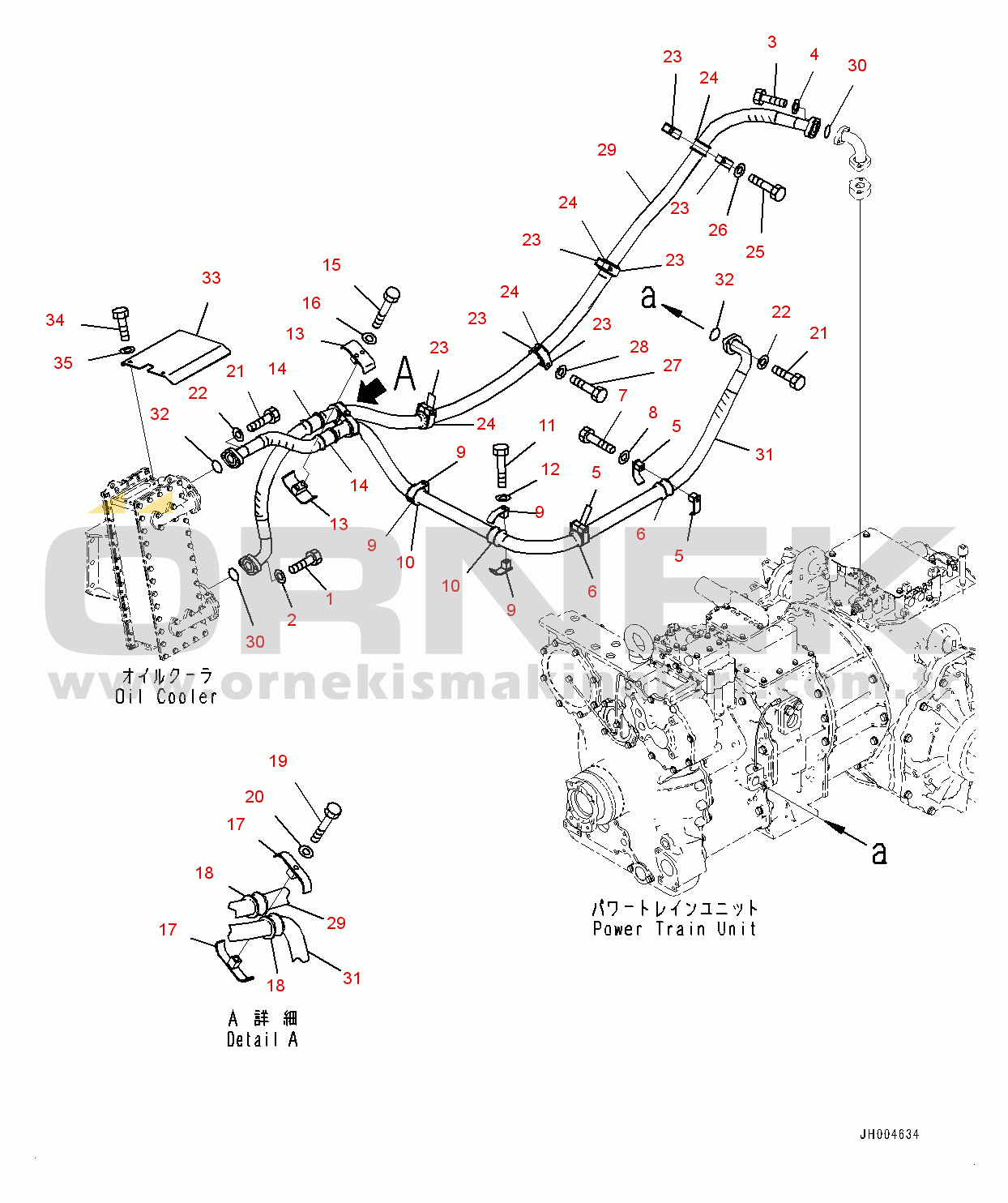 Power Train Oil Cooler Piping, With Engine Oil Pan and Coolant Heater