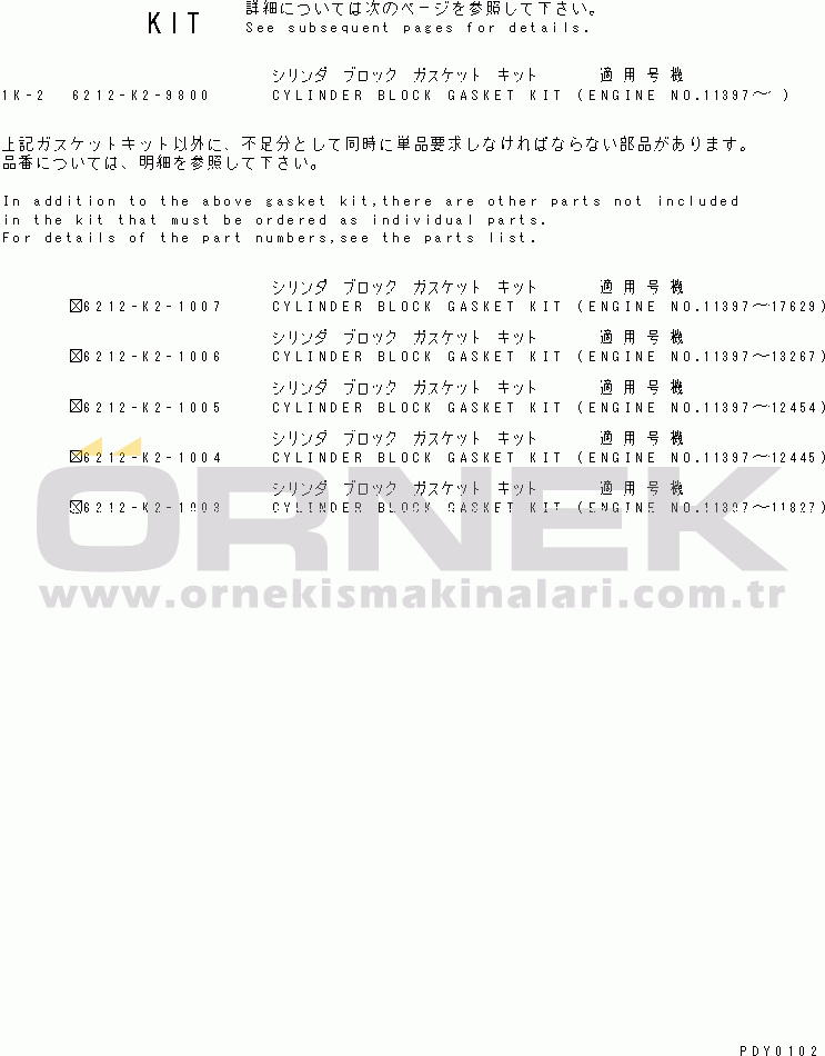 Part Name | : | GASKET KIT,CYLINDER BLOCK | |