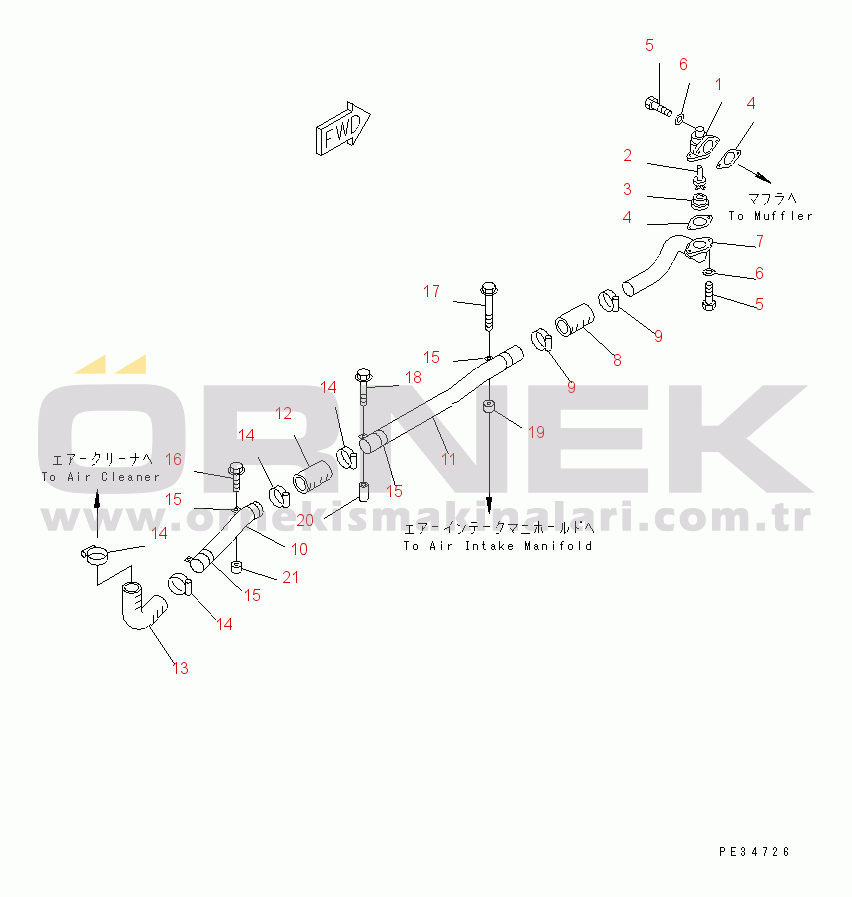 MUFFLER EJECTOR PIPING (AIR INTAKE IN HOOD SPEC.)(#17353-20091)