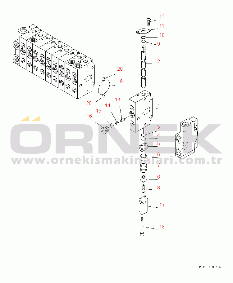 CONTROL VALVE (10-SPOOL) (2/6) (INNER PARTS) (VARIABLE GAUGE SPEC.)
