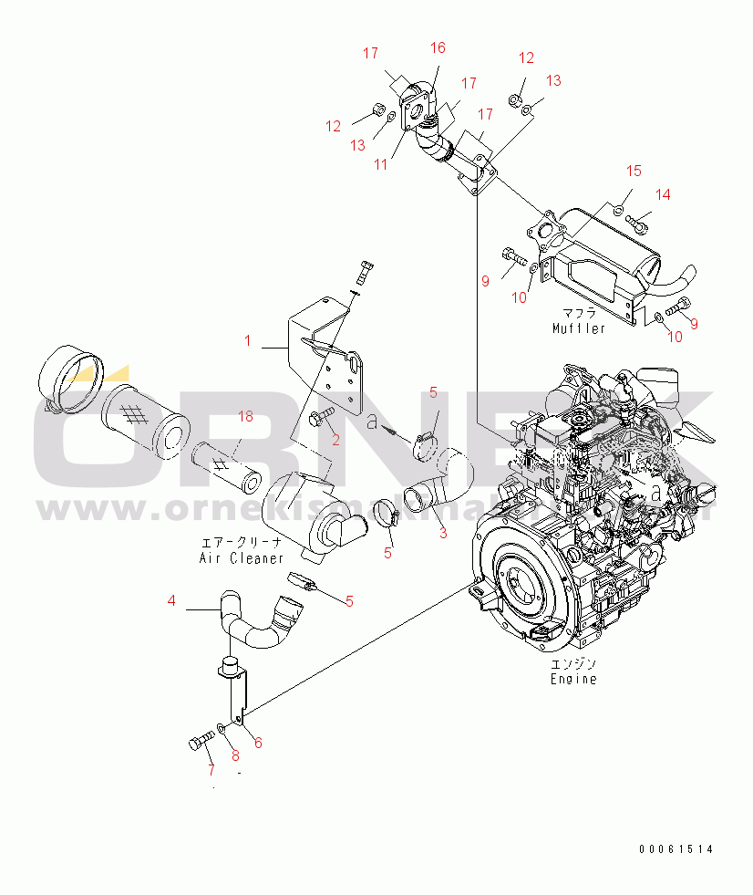 ENGINE MOUNTING PARTS (AIR CLEANER AND MUFFLER) (DOUBLE ELEMENT) (EXCEPT JAPAN)(#12001-) |