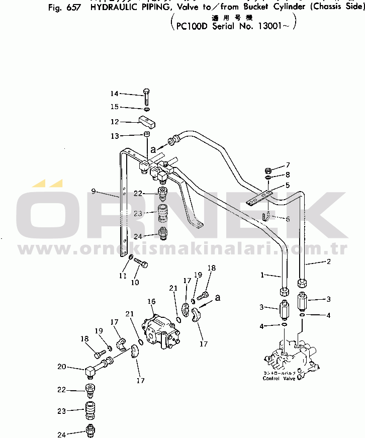 HYDRAULIC PIPING (VALVE T/F BUCKET CYL.) (CHA.SIDE) (PC100D)