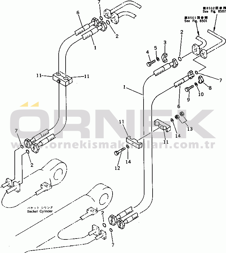 BUCKET CYLINDER PIPING (3/3) (FOR LOADER) (ARM SIDE)
