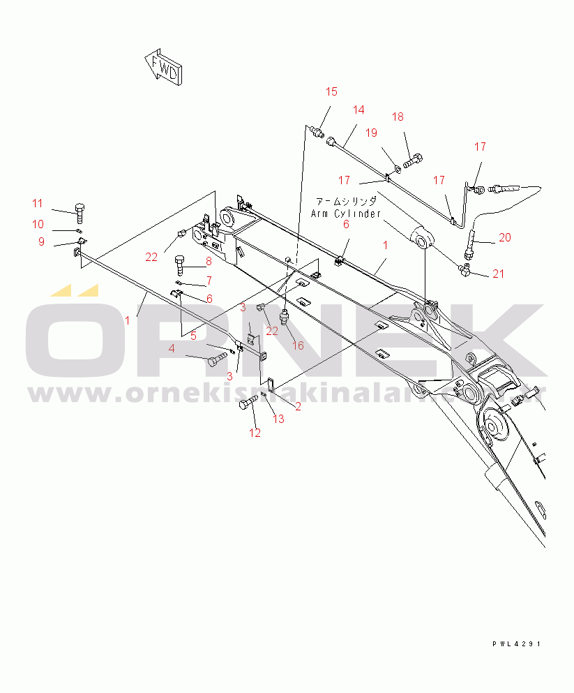 BOOM (SECOND BOOM) (BUCKET LINE AND LUBRICATING LINE) (2-PIECE BOOM) |