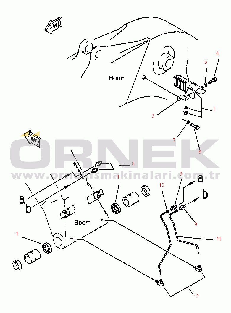 FIG. T1110-09A0 BOOM - WORKING LAMP AND BOOM FOOT LUBRICATION PIPING