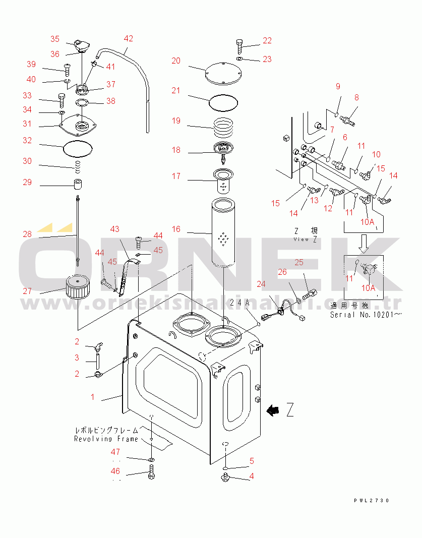 | Main Part | : | HYDRAULIC TANK (WITH SENSOR)(#10001-10201) | |
