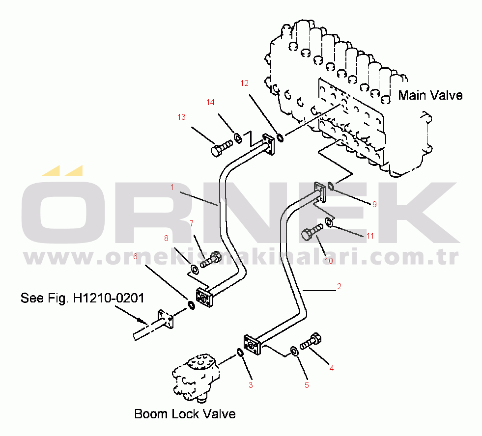 FIG NO. H1210-0101 HYDRAULIC PIPING BOOM LINE (VALVE TO FRAME)