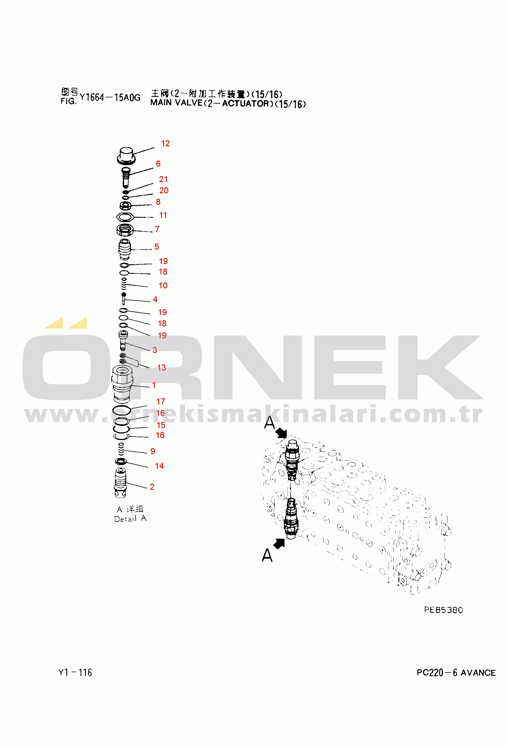 Komatsu PC220-6 Serial NO.80001 and UP, PC220LC-6 Serial NO.90001 and UP, PC220SE-6 Serial NO.A0001 and UP MAIN VALVE(2-ACYUAYOR)(15/16) Part No :