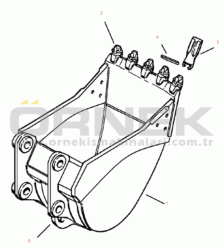 FIG NO. T1510-02A2 BUCKET WITH SUPER V TEETH - ESCO STANDARD DUTY PLATE LIP - 36 IN. WIDE |