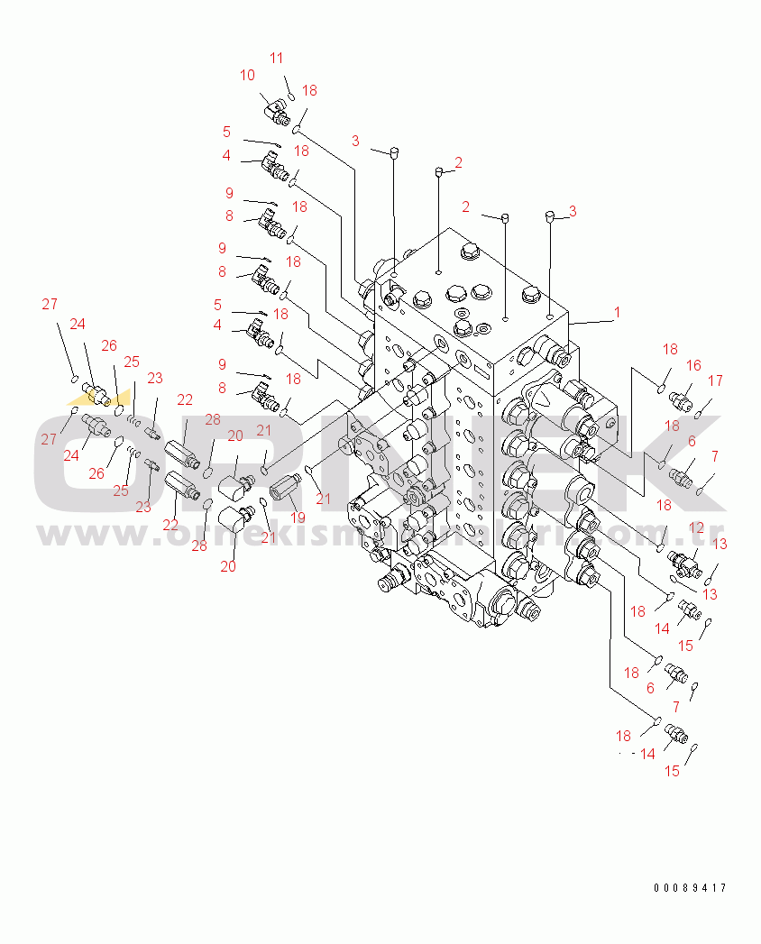 MAIN CONTROL VALVE (CONNECTING PARTS) (1/2)(#25001-)