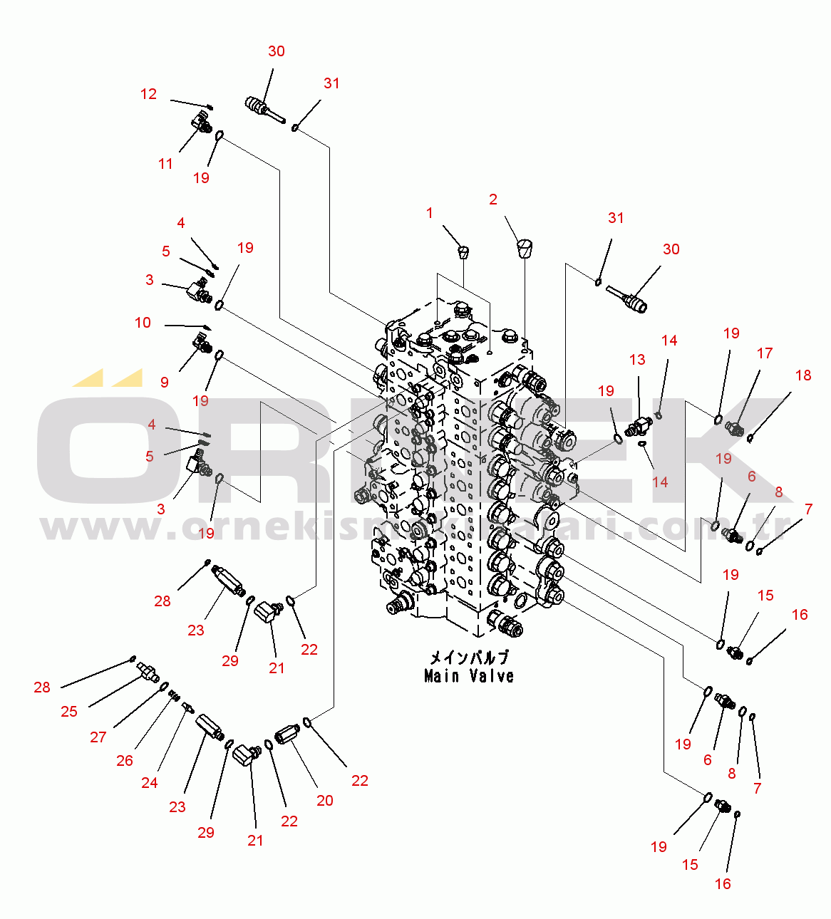 Main Control Valve, For Machine With 1-additional Actuator Circuit (27/31)(#10001-) |