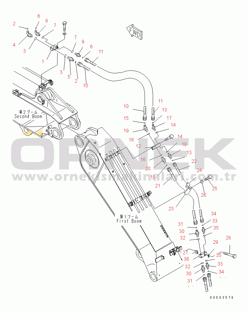 BURST VALVE LINE (BOOM AND ARM) (ARM CYLINDER SIDE) (2/2) (FOR 2-PIECE BOOM) |