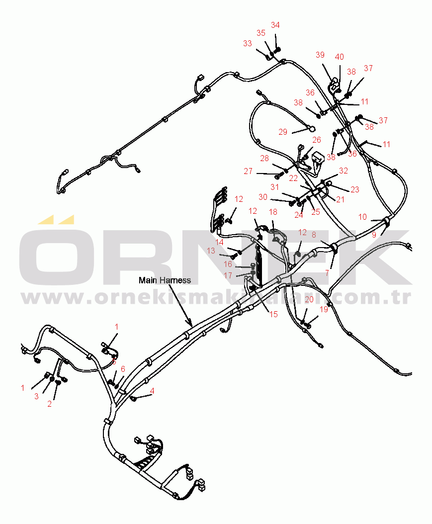 E0200-05H0 MAIN WIRING HARNESS CLAMPS AND MOUNTING (1/2)