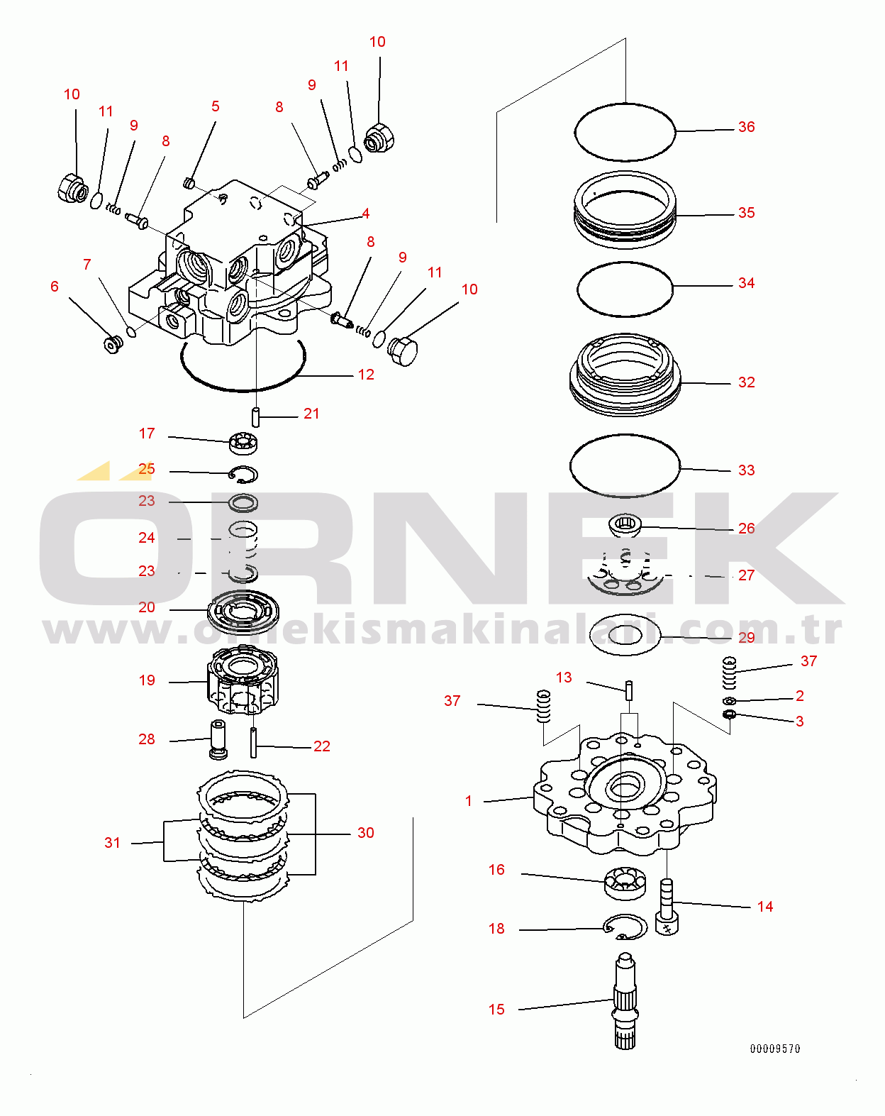 Swing Machinery and Motor, Inner Parts, Swing Motor (1/2) (#15001-) |