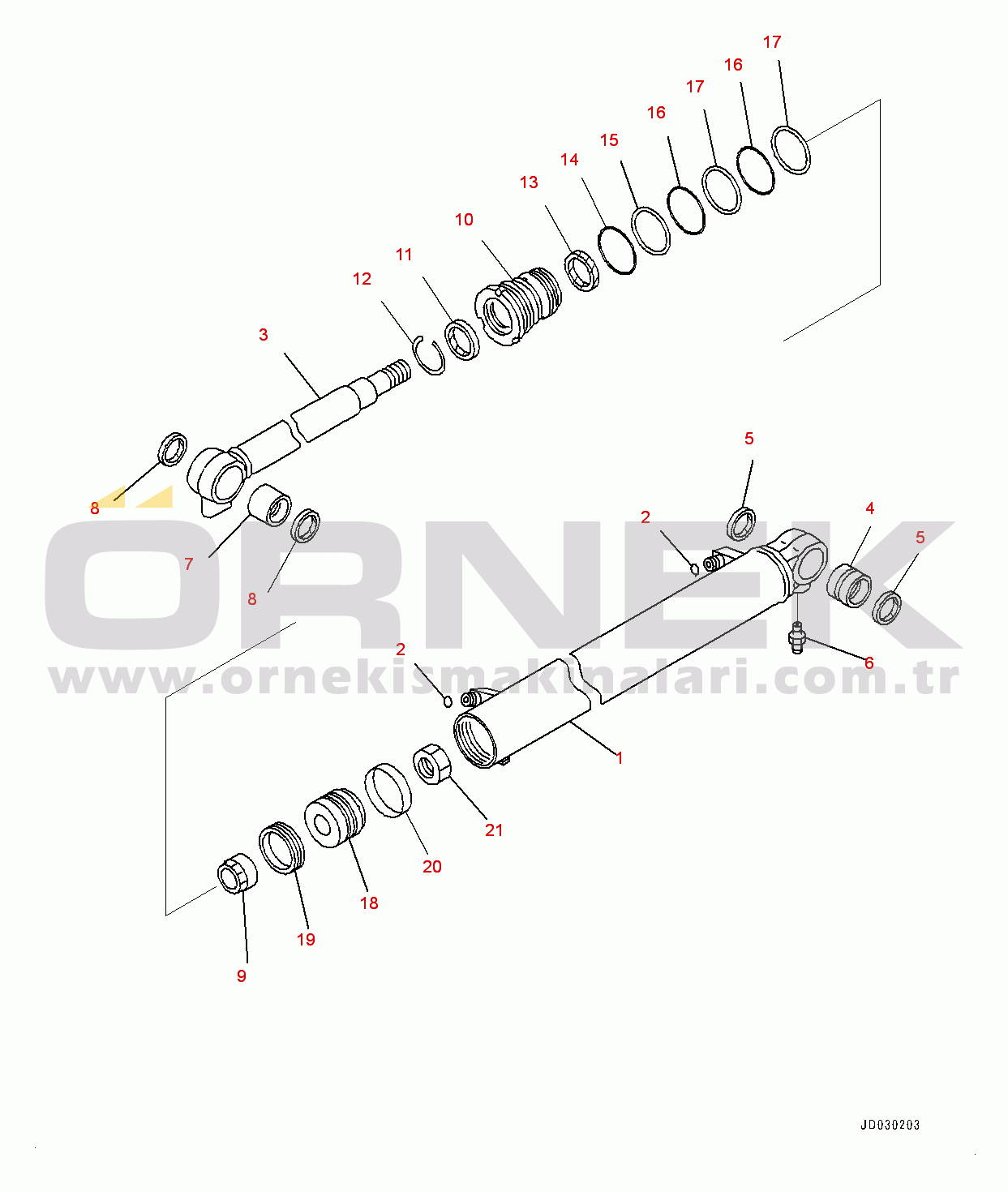 Boom Cylinder, Inner Parts, Boom Cylinder (#16595-18400) |