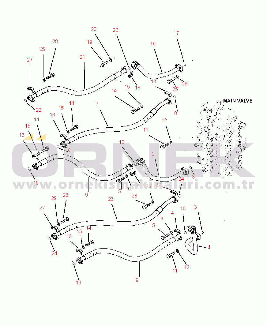 H1220-01A0 HYDRAULIC PIPING ARM AND BUCKET LINE (DRIFT PREVENTIVE VALVE) |