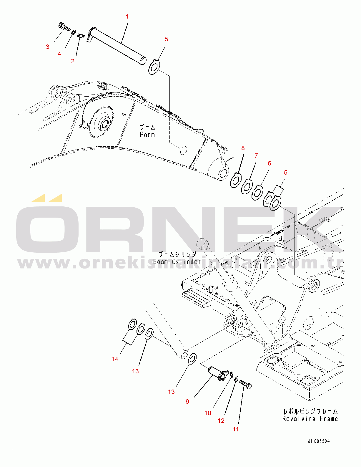 Boom Foot Pin, 500 Hours Lubrication Interval