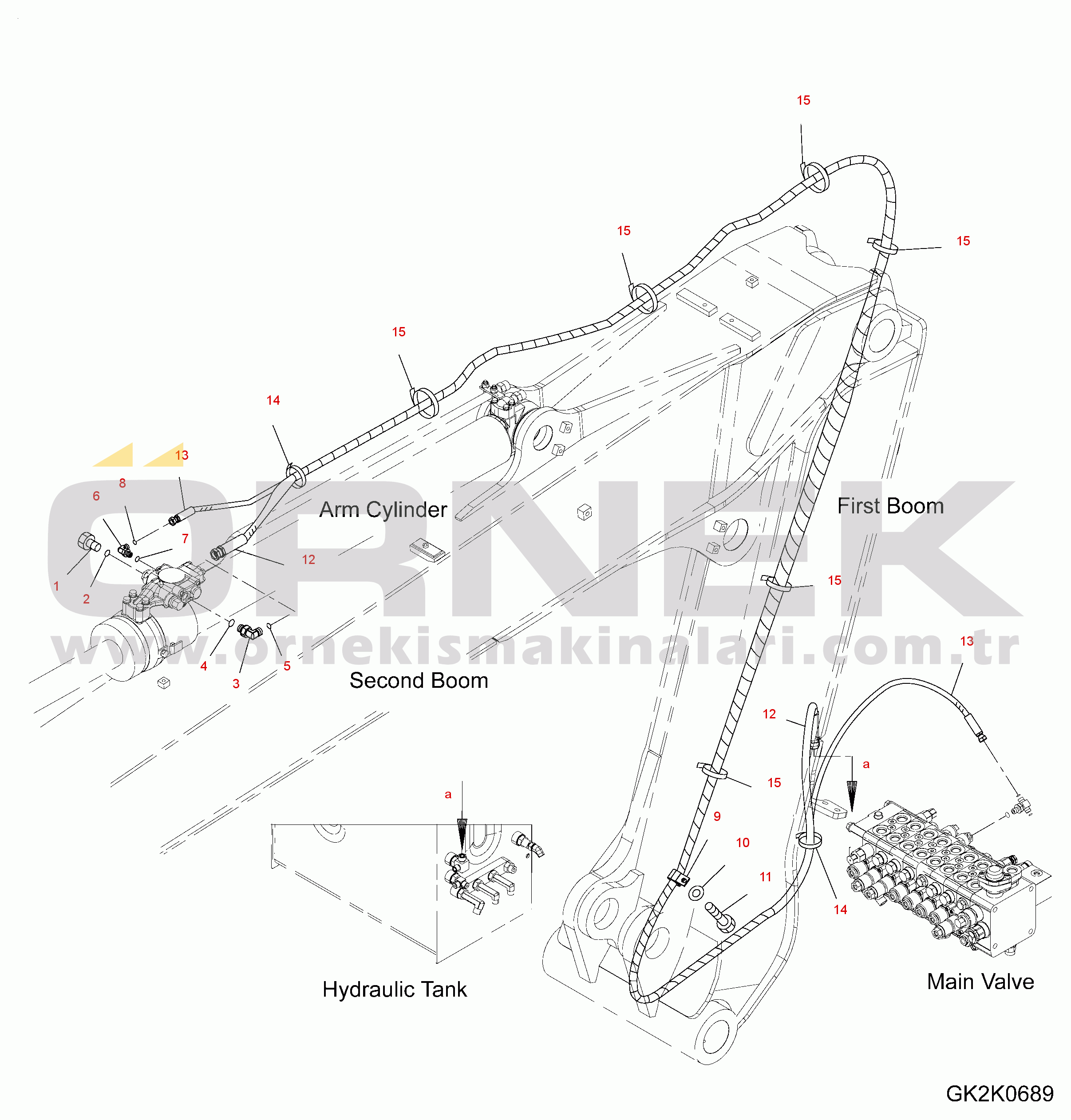 ARM CYLINDER (TWO-PIECE BOOM/WITH SAFETY VALVE) (PIPING)