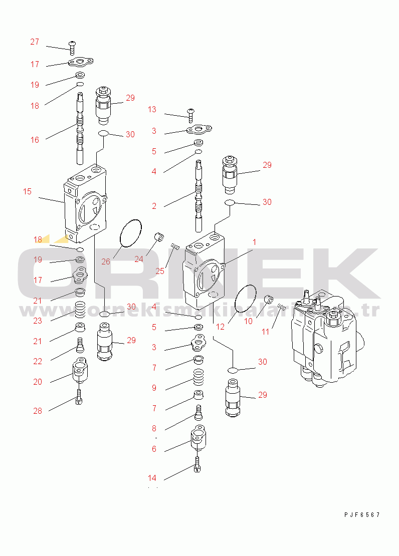 CONTROL VALVE (INNER PARTS) (3/4) (FOR 4-SPOOL CONTROL VALVE) (WITH PORT RELIEF VALVE) |