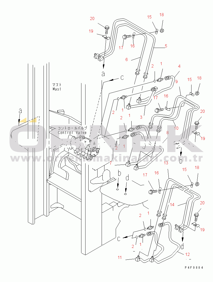 DASHBOARD PIPING (OUTER) (FOR 5-SPOOL CONTROL VALVE) (FOR MANIPULATOR) |