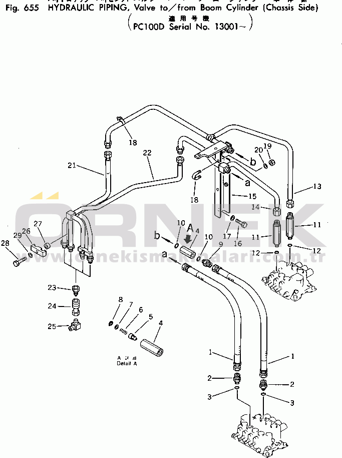 Ana Parça | : | HYDRAULIC PIPING (VALVE T/F BOOM CYLINDER)(CHA.SIDE)(PC100D) | |
