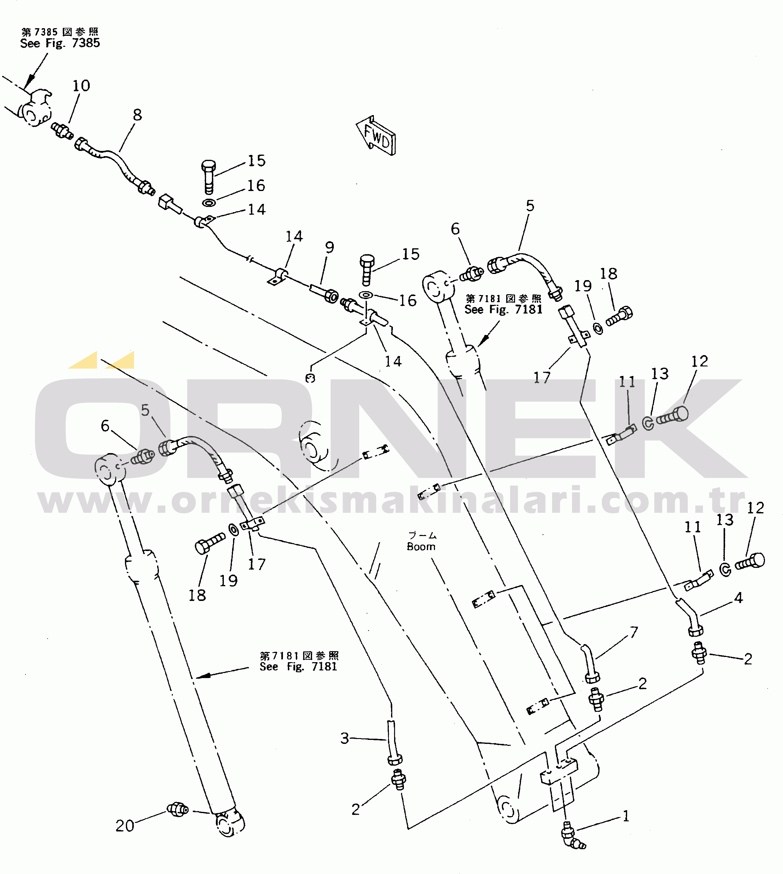 WORK EQUIPMENT LUBRICATION PIPING (BOOM SIDE) (FOR 50 FEET LONG FRONT)
