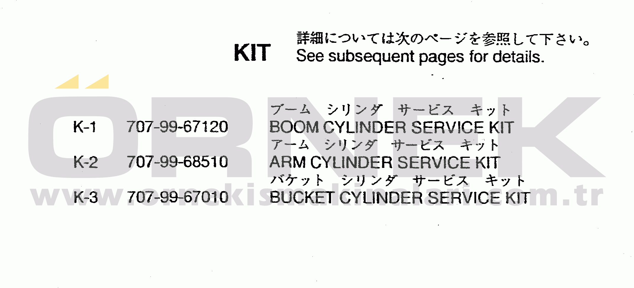 Ana Parça | : | KIT (FOR BACKHOE) | |